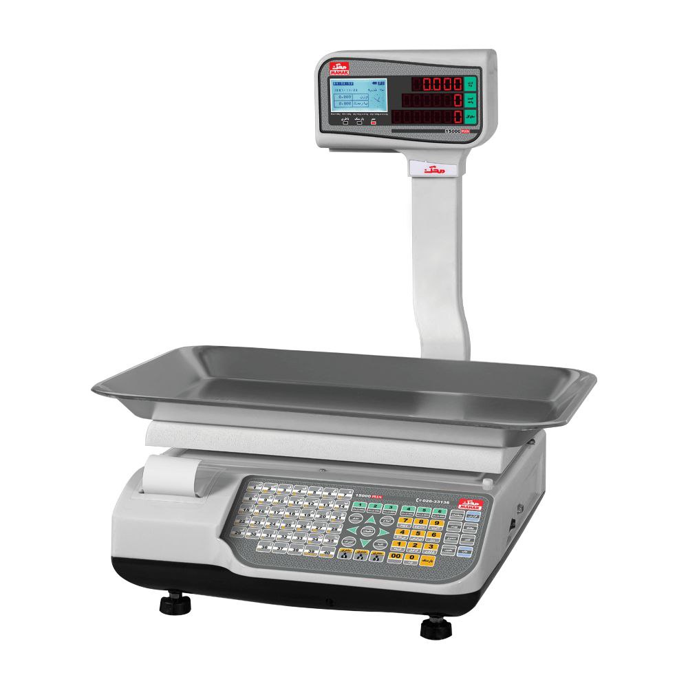 50 کیلویی دقت 2 گرم نمایشگر 6 و 7 رقمی پرینتر دار دارای 40 حافظه مستقیم ذخیره کالا ارائه گزارش فروش روزانه قابل اتصال به کارتخوان بانکی دارای نمایشگر LCD